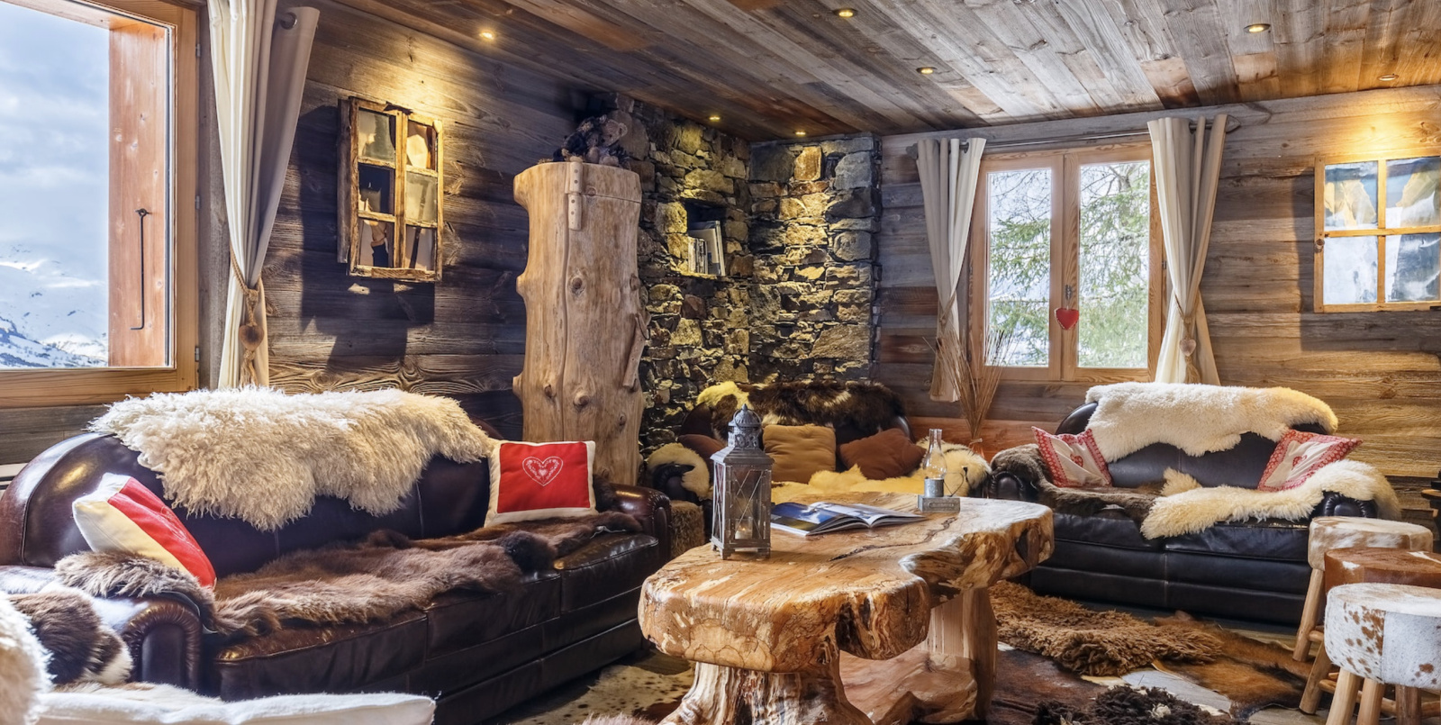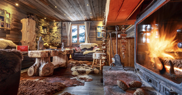 Pensé dans le respect de l’architecture alpine, le chalet met à l’honneur des matériaux naturels et nobles — pierre, vieux bois, lauze — présents aussi bien à l’extérieur qu’à l’intérieur. Ils apportent une chaleur immédiate, une authenticité sincère et une élégance simple, loin de tout superflu.
